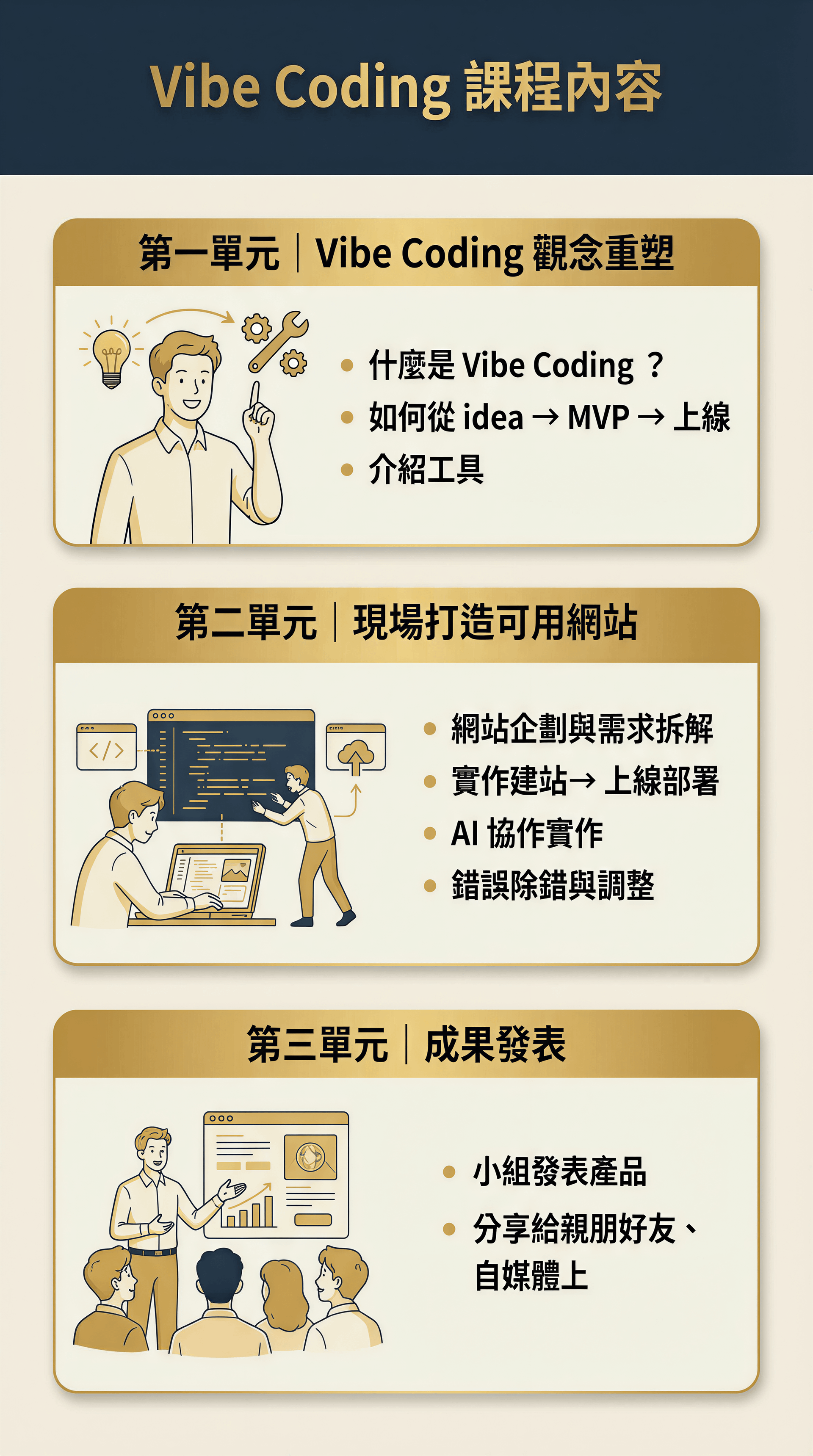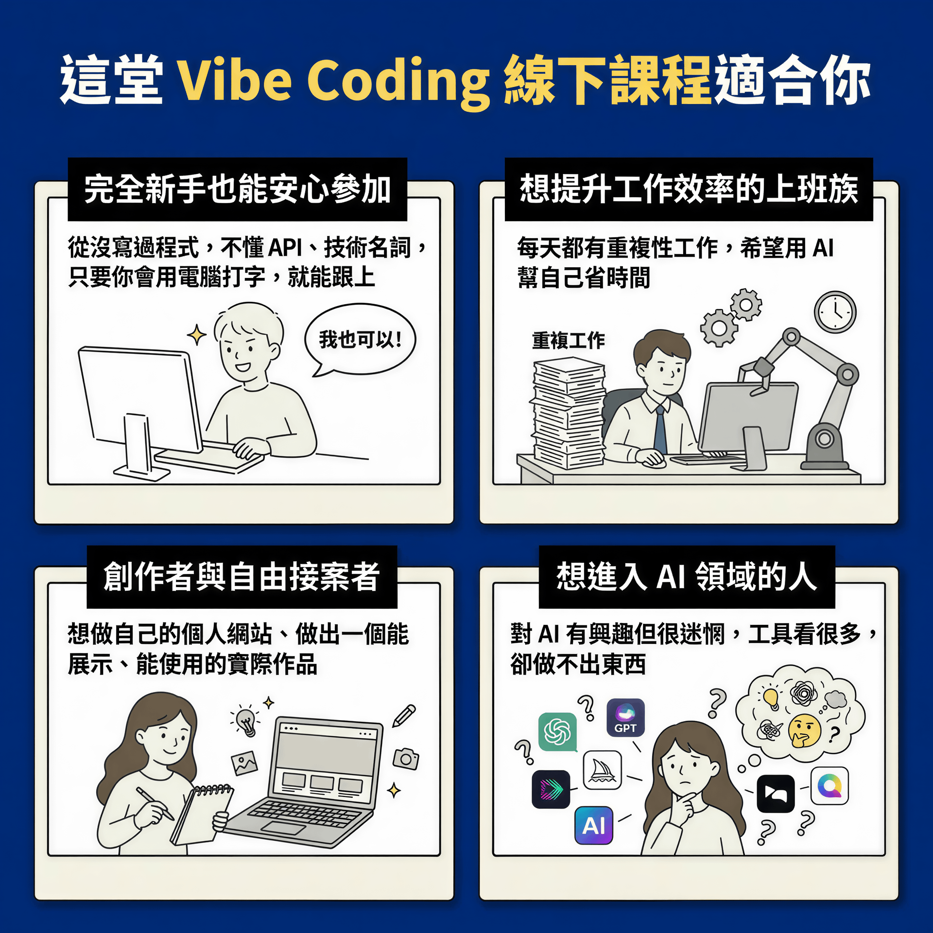 ➡️ 學會「用 AI + Vibe Coding 思維」將想法變成成果